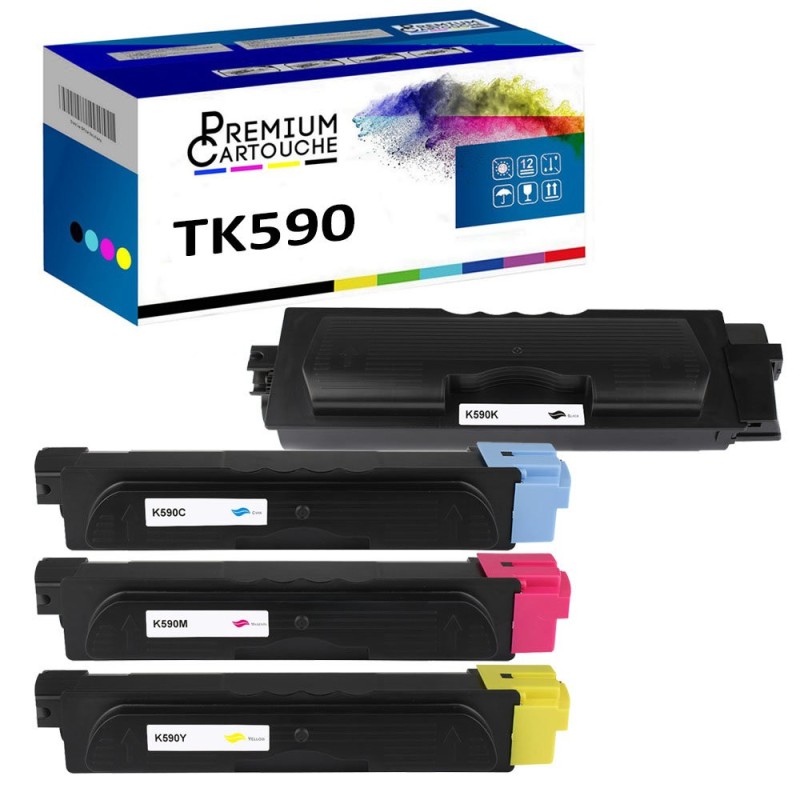 Le lot contient: 4 toners TK590K + TK590C + TK590M + TK590Y (Noir + Cyan + Magenta + Jaune)